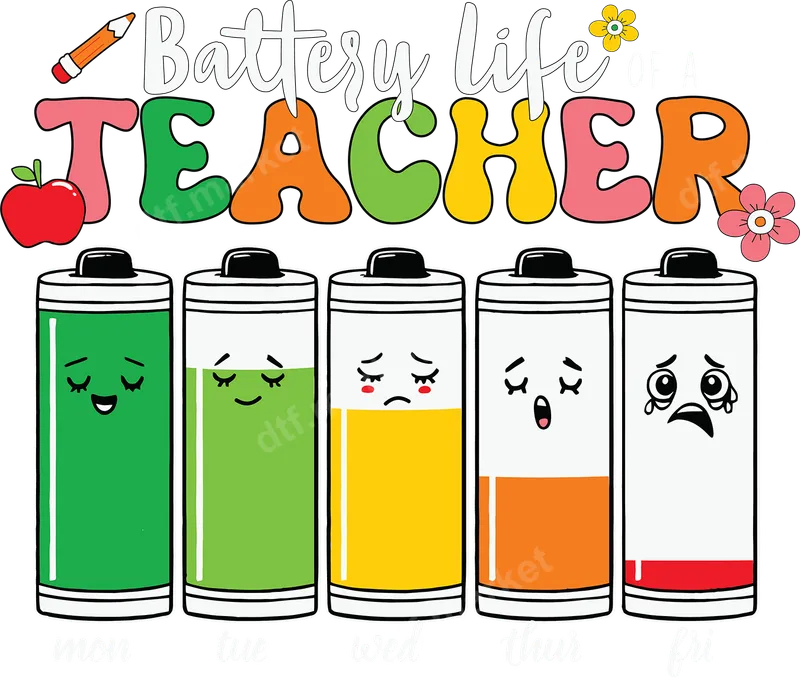 Funny Teacher Battery Life DTF Transfer | Weekly Energy Heat Press Design