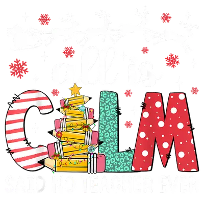 See allBrighten the holidays with our humorous 'All Is Calm Said No Teacher Ever' DTF transfer! This vibrant design features the word "CALM" whimsically stylized: the 'C' with candy cane stripes, the 'A' as a stack of festive pencils adorned like a Christmas tree, the 'L' in a cool teal leopard print, and the 'M' in classic red polka dots. Accented with falling snowflakes and a subtle Santa sleigh silhouette, this ready to press design perfectly captures the chaos and charm of a teacher's holiday season.