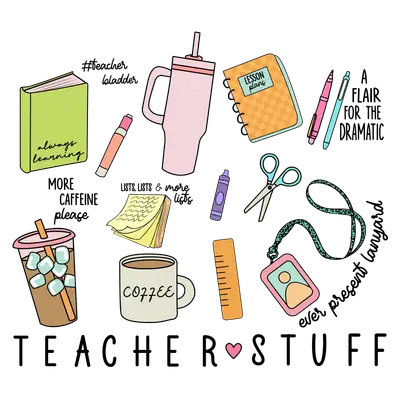 See allShow your love for educators with this charming and humorous Teacher Stuff DTF transfer, a vibrant collection of classroom essentials rendered in a cute, doodle-like style. This eye-catching design features a collage of relatable items like an "always learning" book, a tumbler, coffee cups (hot and iced!), a lesson plans notebook, pens, scissors, sticky notes, a crayon, a ruler, and the "ever present lanyard." Punctuated with witty phrases like "#teacher bladder," "MORE CAFFEINE please," and "LISTS, LISTS & more lists," this ready to press design perfectly captures the daily life and humor of teaching. This delightful iron on transfer is perfect for the dedicated teacher, educator, school staff member, or even student teacher in your life. It makes an ideal gift for Teacher Appreciation Week, Back to School season, end-of-year celebrations, birthdays, or just because! Small boutique owners and Etsy t-shirt sellers can also easily create popular, personalized merchandise with this trending heat transfer design, appealing to anyone who understands the humor and heart of the teaching profession. Applying this heat press transfer is incredibly easy, making it perfect for both seasoned crafters and beginners. It works beautifully on a wide range of materials including cotton, polyester, cotton-poly blends, and even nylon. Simply use a heat press at 300-325°F for 15 seconds with medium pressure, or apply with a household iron. There's no tedious weeding required—just peel and press for instant customization! Create unique custom t-shirts, cozy hoodies, practical tote bags, stylish aprons, or even personalized pillow covers for a teacher's lounge. Our ready to press transfer ensures vibrant, full-color printing with exceptional fine detail, bringing every element of this design to life. It's crack-resistant, soft to the touch, and avoids the heavy, stiff feel often associated with vinyl transfers. Each direct to film transfer is printed on premium DTF film with a strong adhesive backing, guaranteeing professional, long-lasting results that withstand numerous washes (just remember to wash inside out and tumble dry low for best durability).