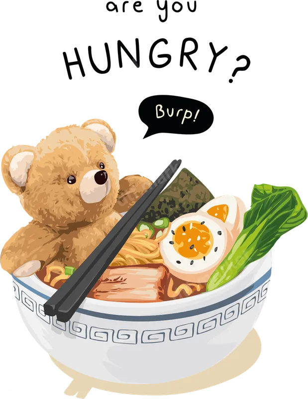 Funny Teddy Bear Ramen Bowl DTF Transfer | Hungry Burp Iron On Design