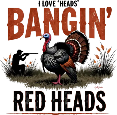 Funny Turkey Hunter 'Heads Bangin' Red Heads' DTF Transfer