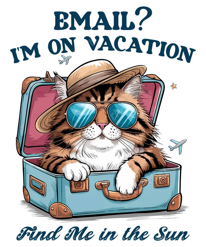 Funny Vacation Cat DTF Transfer - Email I'm On Vacation Sun Design