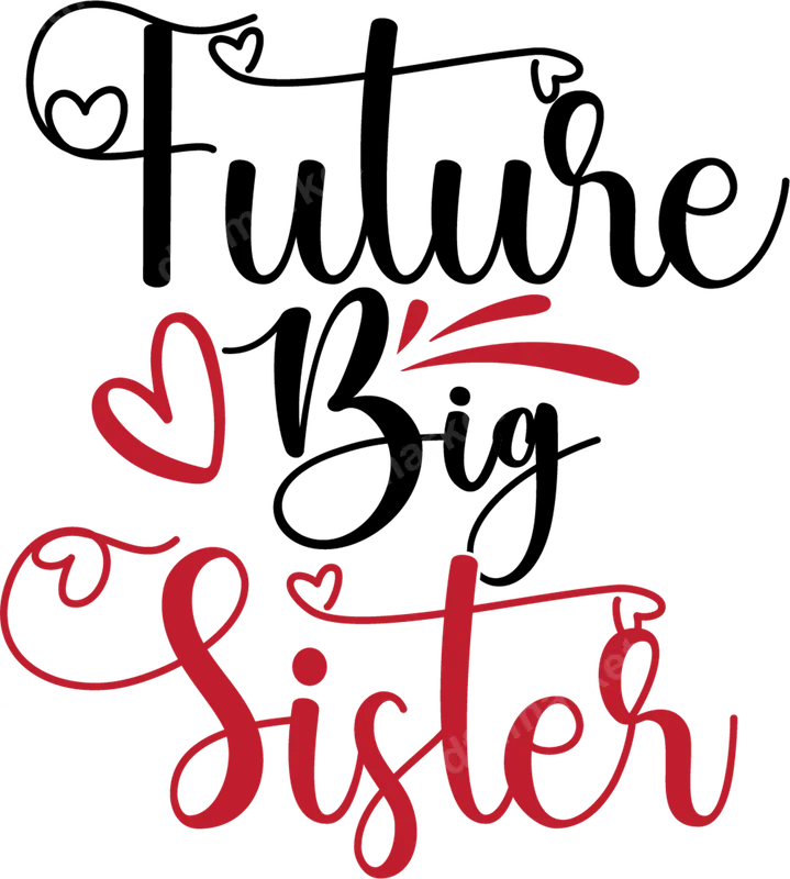See allCelebrate a growing family with our charming 'Future Big Sister' DTF transfer. This heartwarming design features elegant script typography in black and vibrant red, accented with playful hearts and decorative swashes. It's the perfect ready to press transfer to announce a new arrival, creating an instant cherished garment for the proud big sister-to-be. This high-quality direct to film transfer is designed for easy application and lasting charm. This adorable heat press design is ideal for expecting families, baby showers, gender reveals, or as a thoughtful gift for a soon-to-be older sibling. It's wonderful for creating custom t-shirts for photo announcements, family gatherings, or just everyday wear to celebrate the exciting news. Delight grandmas, aunts, and uncles with a cute shirt for their future big sister! Applying your 'Future Big Sister' iron on transfer is simple. Our heat press ready transfers work beautifully on cotton, polyester, and most fabric blends. For best results, use a heat press at 300-325°F for 15 seconds with medium pressure, then cold peel. For those without a professional press, a household iron can also be used with care. Enjoy a smooth, professional finish with absolutely no weeding required! Experience superior quality with our DTF transfers. These t-shirt transfers boast incredibly vibrant colors that pop and a soft, flexible feel that won't crack or fade after washing. Each apparel transfer is crafted from professional-grade DTF film with a strong adhesive, ensuring your custom design lasts as long as the cherished memories it represents. Transform ordinary garments into extraordinary keepsakes with dtf.market.