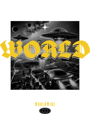 Dive into a dystopian future with this captivating DTF transfer, showcasing a detailed grayscale cityscape bustling under a night sky. Hovering UFOs cast their beams over a sleek, futuristic car flying above the urban sprawl, while distant planets add to the cosmic mystery. Overlaying this intricate scene is the bold, yellow word "WORLD" in a distinct graffiti-style font, making this a truly unique and ready to press design for any apparel. This striking iron on transfer is perfect for sci-fi enthusiasts, urban fashion creators, gamers, and anyone with a love for cyberpunk aesthetics. Small t-shirt businesses and Etsy sellers looking for eye-catching designs to boost their inventory will find this heat transfer design an excellent choice. Ideal for everyday streetwear, sci-fi conventions, or as a creative gift for friends who appreciate a blend of futuristic art and bold typography. Applying this heat press transfer is effortless. It adheres beautifully to a wide range of materials including cotton, polyester, cotton-poly blends, and even nylon. Use a heat press at 300-325°F for 15 seconds with medium pressure, or easily apply with a household iron. No weeding, no fuss – just peel and press! Perfect for custom t-shirts, hoodies, sweatshirts, tote bags, denim jackets, and hats. For lasting durability, wash garments inside out and tumble dry on low. Experience superior quality with this ready to press transfer. It boasts vibrant, full-color printing that captures every fine detail of the futuristic scene and the bold yellow text. Enjoy a crack-resistant finish and a soft-to-the-touch feel, free from the heavy, stiff texture often associated with vinyl transfers. Each direct to film transfer is printed on premium DTF film with a strong adhesive backing, ensuring professional-grade results every time you create custom apparel.