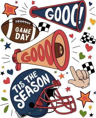 See allThis vibrant Game Day Football DTF transfer captures the exciting spirit of the gridiron season. It features a classic football with "GAME DAY", a bold helmet proclaiming "TIS THE SEASON", and spirited megaphones shouting "GOOO!". Scattered hearts, stars, and checkered flags add a playful touch, making it perfect for celebrating your love for football. This high-quality, ready to press transfer instantly brings game day vibes to any apparel or accessory. This spirited design is perfect for football enthusiasts, proud sports parents, coaches, and anyone showing team pride. It's an ideal iron on transfer for creating custom gear for tailgating parties, high school games, college events, or Super Bowl gatherings. Small businesses, Etsy sellers, and crafters will find this heat transfer design a popular choice for fall and winter collections, making great gifts for dads, moms, and devoted fans. Applying this versatile heat press transfer is a breeze, suitable for cotton, polyester, blends, and even nylon. Achieve professional results using a heat press (300-325°F, 15 seconds, medium pressure) or a household iron. No weeding is required – just peel and press! Perfect for custom t-shirts, hoodies, sweatshirts, tote bags, pillow covers, or baby onesies. For lasting durability, wash garments inside out and tumble dry on low. Experience superior quality with this ready to press transfer, boasting vibrant, full-color printing and exceptional fine detail. Our DTF technology ensures a crack-resistant finish that feels soft, avoiding the stiff feel of traditional vinyl. Each direct to film transfer is meticulously printed on premium DTF film with a strong adhesive backing to guarantee professional, long-lasting results every single time.