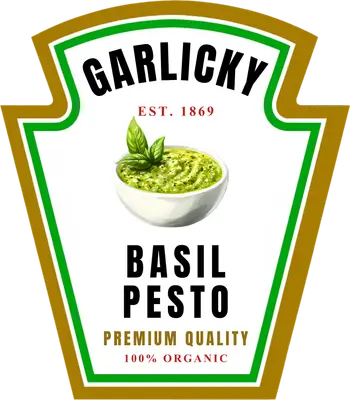 Garlicky Basil Pesto DTF Transfer | Funny Foodie Label Design