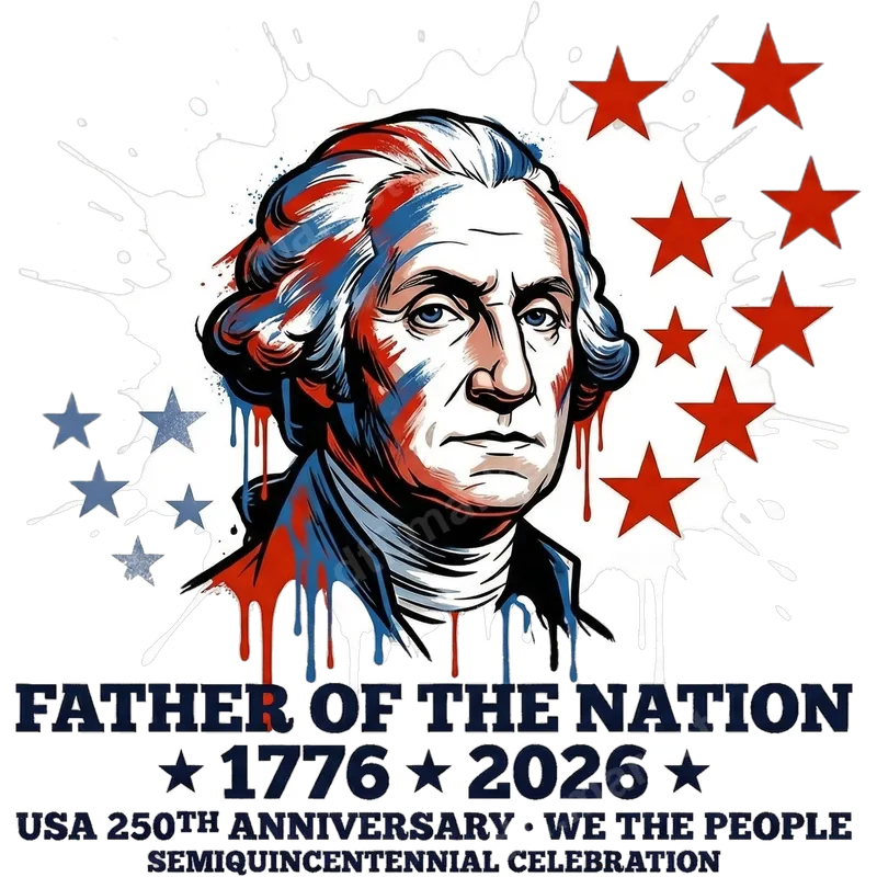 See allEmbrace American heritage with this striking George Washington "Father of the Nation" DTF transfer. Featuring a vibrant, stylized portrait of the first president adorned with patriotic red, white, and blue paint splatters and stars, this ready to press design proudly commemorates the USA's 250th anniversary in 2026. The bold typography highlights "1776 * 2026" and "We The People," making it a powerful statement piece for any garment. This powerful heat press design is perfect for anyone passionate about American history and national pride. Ideal for patriots, history buffs, veterans, and educators, it's a fantastic way to celebrate the upcoming USA 250th Anniversary and Semiquincentennial Celebration in 2026. Create custom apparel for 4th of July, Memorial Day, President's Day, or any patriotic event. It also makes a thoughtful gift as a unique t-shirt transfer for friends and family who cherish American values. Applying this apparel transfer is incredibly easy, making it accessible for everyone. Our high-quality iron on transfer works flawlessly on a wide range of fabrics, including 100% cotton, 100% polyester, and cotton/poly blends. For best results, use a heat press at 300-325°F for 15 seconds with medium pressure, then a cold peel. You can even use a household iron, following included instructions. The best part? No weeding, cutting, or vinyl required—just press and enjoy your custom creation! Experience superior quality with every DTF heat transfer. Our transfers are crafted using professional-grade DTF film and inks, ensuring vibrant colors that pop and sharp details that last. The strong adhesive provides excellent durability, making your design crack-resistant and able to withstand numerous washes without fading or peeling. You'll love the soft, smooth feel of the design on your garment, providing both comfort and professional-grade results every time.