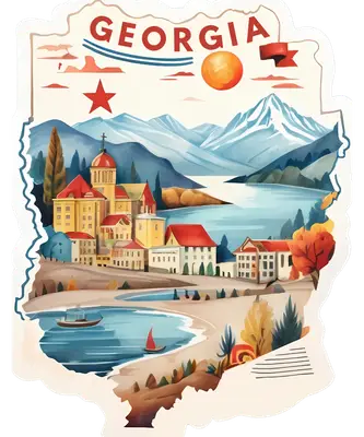Georgia Country Travel Poster DTF Transfer | Mountains Lake Town Vintage Ready to Press