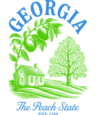 See allThis exquisite DTF transfer showcases a timeless vintage design celebrating the state of Georgia, famously known as "The Peach State." The illustration features the word "GEORGIA" prominently arched in blue above a lush green peach branch laden with fruit, a charming rustic house nestled in rolling hills, and a robust tree. Below, the elegant script reads "The Peach State EST. 1788," evoking a strong sense of heritage and southern charm. This ready to press design is perfect for those who appreciate classic Americana and want to display their state pride with a touch of nostalgia. This versatile iron on transfer is ideal for proud Georgians, history enthusiasts, and anyone with an affection for the South. It makes a fantastic gift for residents, visitors, or students, and is perfect for creating custom apparel for local events, family gatherings, or as unique travel souvenirs. Small businesses and crafters will find this heat transfer design an excellent addition to their inventory for producing popular, high-quality state-themed merchandise. Applying this heat press transfer is straightforward. It adheres beautifully to a wide range of materials, including cotton, polyester, cotton-poly blends, and even nylon, ensuring broad compatibility. For best results, use a heat press at 300-325°F for 15 seconds with medium pressure, or apply with a household iron following similar temperature and pressure guidelines. There's no tedious weeding required—simply peel the backing and press! Create stunning custom t-shirts, cozy hoodies, durable tote bags, unique denim jackets, or even decorative pillow covers. For lasting wear, wash your finished garment inside out and tumble dry on low heat. Experience superior quality with this ready to press transfer. It boasts vibrant, full-color printing that captures every fine detail of the vintage artwork. The design is crack-resistant, soft to the touch, and avoids the heavy, stiff feel often associated with vinyl transfers. Each direct to film transfer is printed on premium DTF film, ensuring a strong adhesive backing for professional, long-lasting results that will stand the test of time and wash.