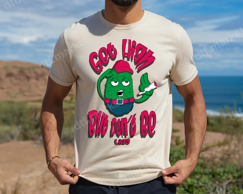 See allInject some motivational humor into your wardrobe with our 'Get High But Don't Be Lazy' DTF transfer. This eye-catching design features a cool, cartoon cannabis bud character, complete with a hat and joint, embodying a laid-back yet proactive vibe. The bold, retro-style lettering delivers a witty message perfect for those who appreciate stoner culture with a productive twist. This ready to press transfer is ideal for adding a unique, humorous statement to your favorite garments. This distinctive apparel transfer is perfect for cannabis enthusiasts, adults who appreciate edgy humor, or anyone looking for a fun conversation starter. It makes an excellent gift for birthdays, 4/20 celebrations, or casual wear, allowing you to express your personality and a chill but motivated philosophy. Show off your playful side with this design that appeals to those who enjoy a blend of humor and a subtle push to get things done. Our premium heat transfer ensures easy application on a wide range of fabrics, including cotton, polyester, and blends. For optimal results, use a heat press at 300-325°F for 15 seconds with medium pressure, then cold peel. A household iron can also be used effectively. Forget complex weeding; this iron on transfer simplifies customizing t-shirts, hoodies, and more, making your DIY projects effortless. Experience the exceptional quality of our direct to film transfers. Crafted with professional-grade DTF film and strong adhesive, these heat press designs offer vibrant colors and sharp details that are crack-resistant and soft to the touch. Your custom creations will maintain their integrity and bold statement through countless washes, ensuring lasting wear and visual appeal.