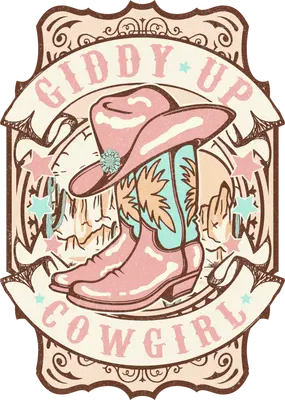 Giddy Up Cowgirl DTF Transfer | Pink Boots & Hat Western Heat Press Design