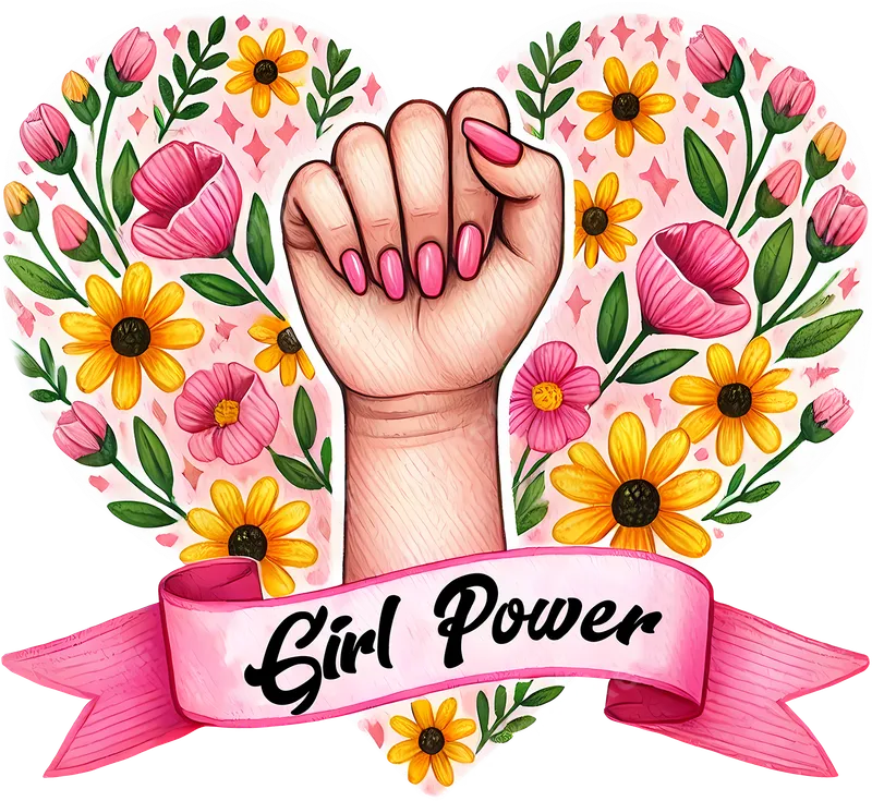 See allThis vibrant DTF transfer features a powerful raised fist with pink nails, encircled by a heart-shaped burst of cheerful pink and yellow flowers and lush green leaves. A flowing pink banner proudly proclaims "Girl Power" in a stylish script, embodying strength, unity, and feminine spirit. This beautiful and ready to press design is perfect for adding an empowering touch to any garment or accessory. Ideal for feminists, women's rights advocates, sororities, or anyone celebrating female empowerment, this design makes a fantastic statement piece. It's perfect for International Women's Day, Women's History Month, Mother's Day gifts, birthdays, or as a thoughtful present for friends, sisters, and mothers who inspire strength. Create custom apparel for rallies, casual wear, or empowering events with this meaningful image. Applying this heat press design is incredibly simple. Our premium ready to press transfer works seamlessly on a wide range of materials, including cotton, polyester, and their blends. For best results, use a heat press at 300-325°F for 15 seconds with medium pressure. It can also be applied with a household iron (follow included instructions). Forget tedious weeding; simply press and peel for a flawless finish. Experience superior quality with our durable direct to film transfer. Each heat transfer ensures vibrant, true-to-color results that are incredibly soft to the touch and highly crack-resistant. Made with professional-grade DTF film and strong adhesive, your customized t-shirt transfer will withstand countless washes, maintaining its stunning appearance and empowering message for years to come.