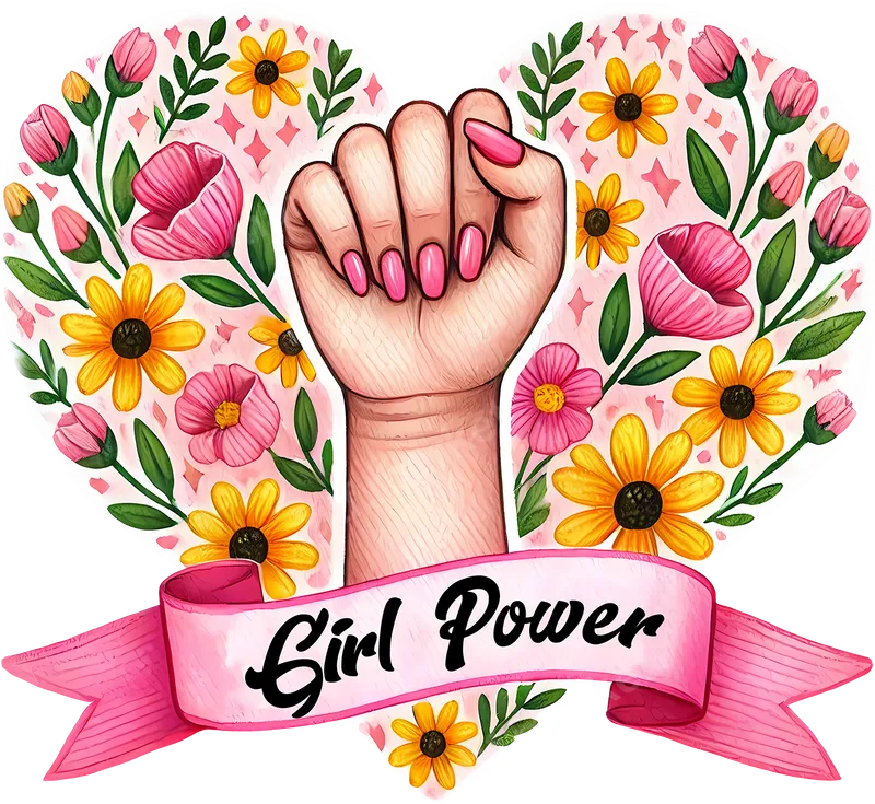 See allShow your strength and support with this stunning "Girl Power" floral DTF transfer. Featuring a powerful raised fist with perfectly pink nails, framed within a beautiful heart-shaped arrangement of vibrant pink and yellow flowers, this design is a symbol of feminine empowerment. The iconic "Girl Power" text is elegantly displayed on a pink ribbon banner, making this ready to press design a bold statement piece for any garment. This empowering design is ideal for women, feminists, activists, and anyone who champions gender equality and strength. It's perfect for celebrating International Women's Day, Women's History Month, attending rallies or protests, or simply as an everyday reminder of female resilience. It makes a thoughtful and inspiring gift for friends, daughters, mothers, and sisters who embody the spirit of girl power. Applying this premium heat transfer is incredibly simple. It adheres perfectly to a wide range of fabrics including cotton, polyester, and their blends. Use a heat press at 300-325°F for 15 seconds with medium pressure, or apply it easily with a household iron. Best of all, there's no weeding required – just press and peel for a professional finish. This iron on transfer ensures a seamless DIY apparel customization experience. Our DTF transfers are crafted for exceptional quality, offering vibrant colors that resist cracking and fading, ensuring your message remains impactful wear after wear. The soft-touch feel of the print ensures comfort, while the strong adhesive guarantees long-lasting durability. Get professional-grade, heat press ready t-shirt transfers that stand out.