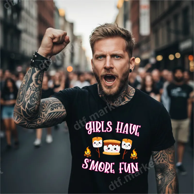 Girls Have S'more Fun DTF Transfer - Cute S'mores & Campfire Design