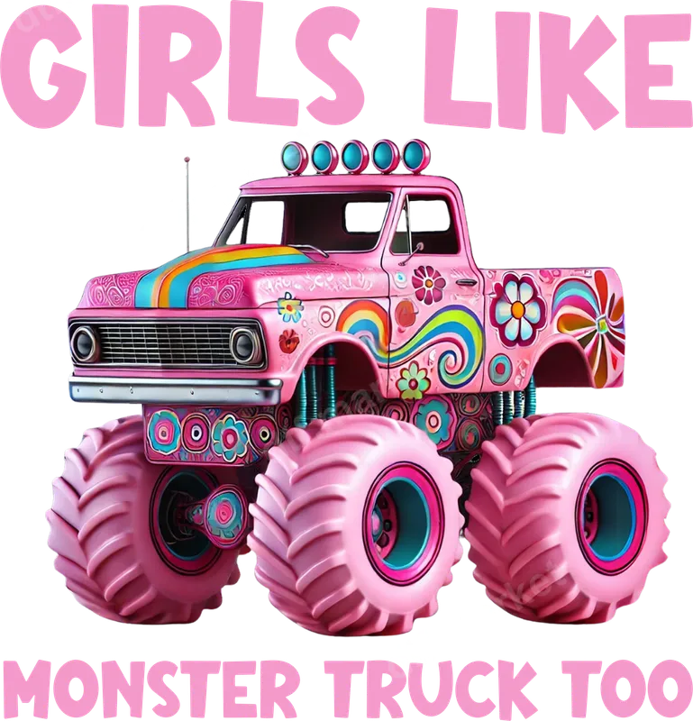 See allUnleash a statement of fun and feminine power with our 'Girls Like Monster Truck Too' DTF transfer. This vibrant heat press design features a super cool pink monster truck adorned with groovy rainbow stripes, peace signs, and cheerful floral patterns, all in a distinct retro style. It's a high-quality, ready to press direct to film transfer that's perfect for challenging stereotypes and celebrating individuality with a pop of color and attitude. This unique iron on transfer is ideal for any girl or woman who loves monster trucks and isn't afraid to show it! It makes an excellent gift for birthdays, back-to-school, or just because. Perfect for proud parents of spirited girls, monster truck rally attendees, or anyone looking to add a touch of retro cool and empowerment to their wardrobe. Let your personality shine with this eye-catching apparel transfer. Applying this heat press ready design is a breeze. Our DTF transfers work beautifully on a wide variety of fabrics, including cotton, polyester, and cotton/poly blends. For best results, use a heat press at 300-325°F for 15 seconds with medium pressure, then cold peel. For smaller projects or household use, a firm application with a conventional iron can also be effective. Say goodbye to tedious weeding – simply press and enjoy! Experience exceptional quality with our professional-grade DTF transfer film. Each print boasts vibrant, true-to-color inks that are designed to resist cracking and fading, ensuring your garment looks fantastic wear after wear. The soft-touch finish integrates seamlessly with the fabric, providing a comfortable feel that's perfect for t-shirts, hoodies, bags, and more. Get ready to create custom apparel that stands out!