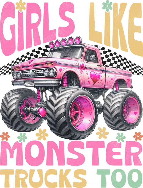 Girls Like Monster Trucks Too DTF Transfer Pink Retro Truck