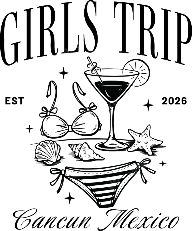 Girls Trip Cancun 2026 DTF Transfer | Beach Vacation Ready-to-Press Design