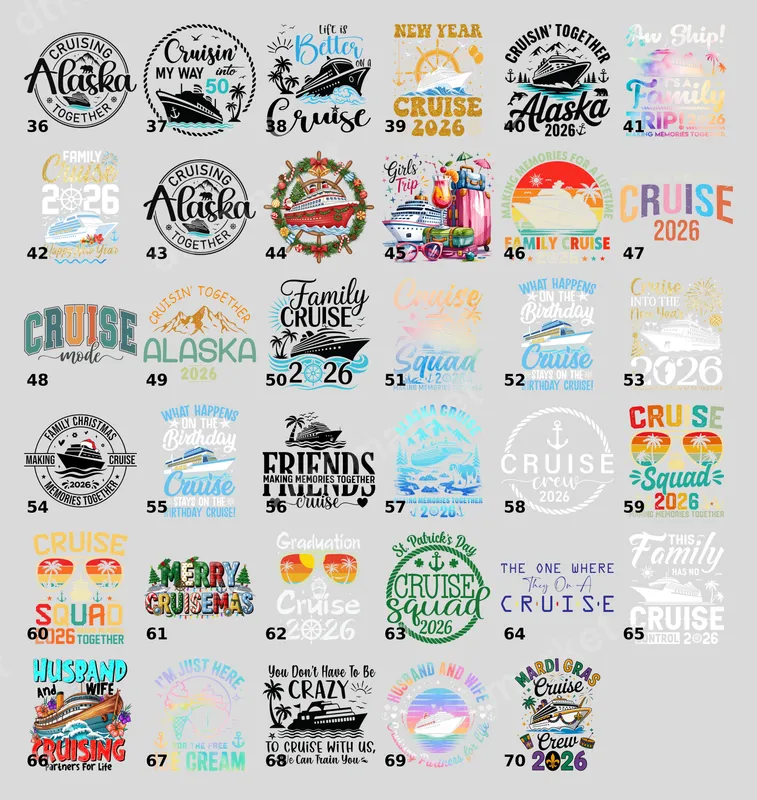 See allThis vibrant Girls' Trip DTF transfer features a festive cruise ship, palm trees, colorful cocktails, and stylish luggage, evoking the perfect vacation mood. It's a premium, ready to press design that captures the excitement of a getaway with your favorite ladies. This detailed heat press transfer is ideal for creating custom apparel that celebrates friendship and adventure. Perfect for best friends, sisters, or any group of women embarking on a memorable journey, this iron on transfer is excellent for bachelorette parties, graduation trips, birthday cruises, or simply a fun girls' weekend. Surprise your travel companions with matching t-shirts, tank tops, or beach bags, making it an unforgettable gift for any travel enthusiast. Our high-quality direct to film transfer is incredibly versatile, applying seamlessly to cotton, polyester, and various fabric blends. Achieve professional results with a heat press set to 300-325°F for 15 seconds with medium pressure, or easily apply with a household iron. No tedious weeding or layering required – just press and go for a flawless finish. Experience vibrant colors, exceptional durability, and a soft, crack-resistant feel with every application. Each apparel transfer is crafted using professional-grade DTF film and strong adhesive, ensuring your custom creation withstands countless washes and wears. Create personalized garments that look professionally made and stand out on your next adventure.