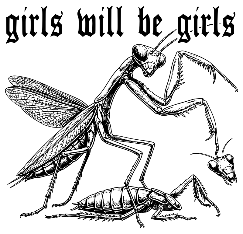 Girls Will Be Girls Praying Mantis Dark Humor DTF Transfer