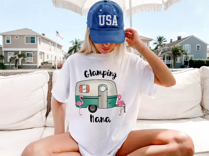 See allEmbrace the fun of the outdoors with our adorable 'Glamping Nana' DTF transfer, featuring a charming retro camper flanked by two cheerful pink flamingos. This delightful design perfectly captures the spirit of luxurious camping with a touch of playful whimsy. It's a vibrant, ready to press heat transfer that brings personality to any garment, fantastic for personalizing apparel. This unique heat press design is tailor-made for grandmothers who love to travel, camp, or simply enjoy stylish nature adventures. It's an ideal apparel transfer for Mother's Day, Nana's birthday, family vacations, or just a thoughtful surprise. Perfect for creating custom shirts for a glamping trip or as a cozy gift for the special 'Nana' in your life, celebrating her adventurous spirit. Applying your 'Glamping Nana' iron on transfer is incredibly simple. Our DTF transfers work beautifully on a wide range of fabric types, including cotton, polyester, and various blends. For best results, use a heat press at 300-325°F for 15 seconds with medium pressure. With no weeding required, you can create professional-looking garments quickly and efficiently, even with a household iron. Experience exceptional quality with our direct to film transfers. Each design boasts vibrant colors, excellent wash durability, and a soft, flexible feel that won't crack or peel over time. Crafted using professional-grade DTF film and strong adhesive, these transfers ensure your 'Glamping Nana' design remains beautiful and intact through countless wears and washes. Elevate your custom apparel with a premium product.