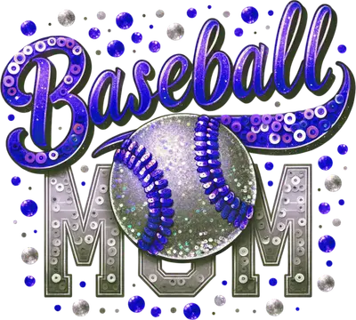 Glitter Baseball Mom DTF Transfer | Royal Blue & Silver Ready to Press