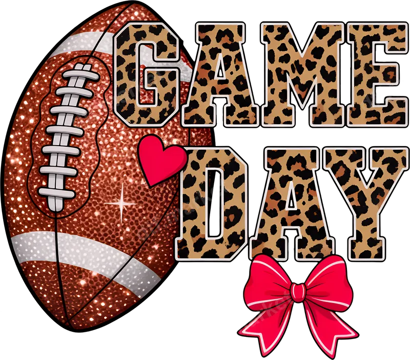 Glitter Game Day Football Leopard Print DTF Transfer with Bow