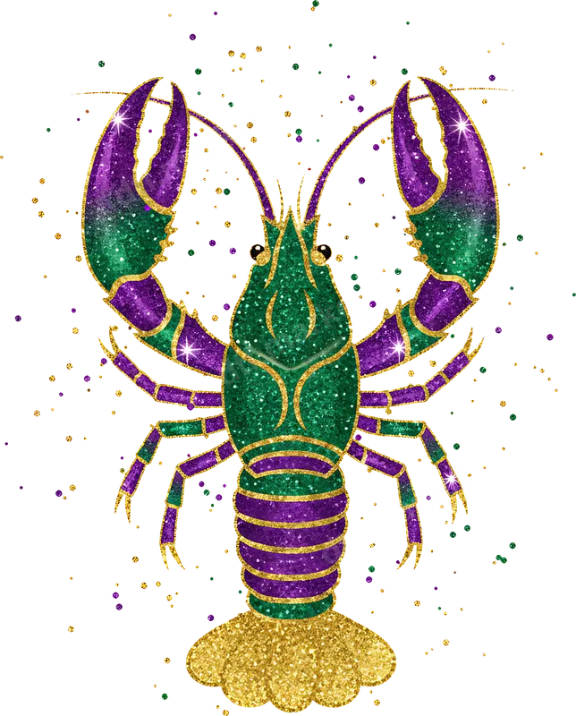 Glitter Mardi Gras Crawfish DTF Transfer - Festive Purple Green Gold