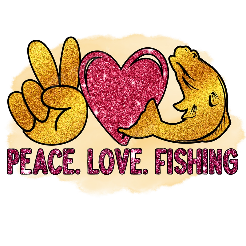 Glitter Peace Love Fishing DTF Transfer | Ready to Press Heat Transfer