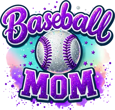 Glitter Purple Baseball Mom DTF Transfer Ready to Press