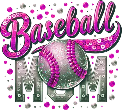 Glitter Sequin Baseball Mom DTF Transfer - Sparkle Pink Game Day