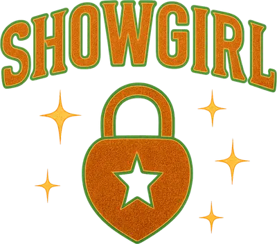 Glittery SHOWGIRL Heart Lock DTF Transfer | Sparkle & Glam