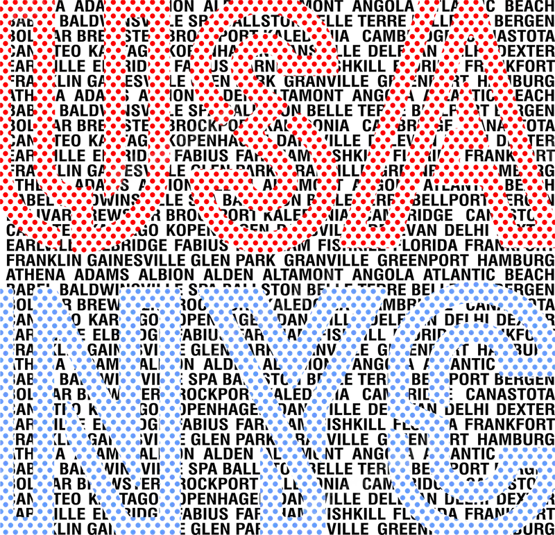 Global City Names Red Blue Dot Matrix DTF Transfer