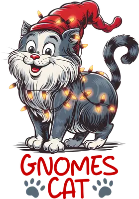 Gnomes Cat Christmas Lights DTF Transfer | Festive Feline Heat Press Ready