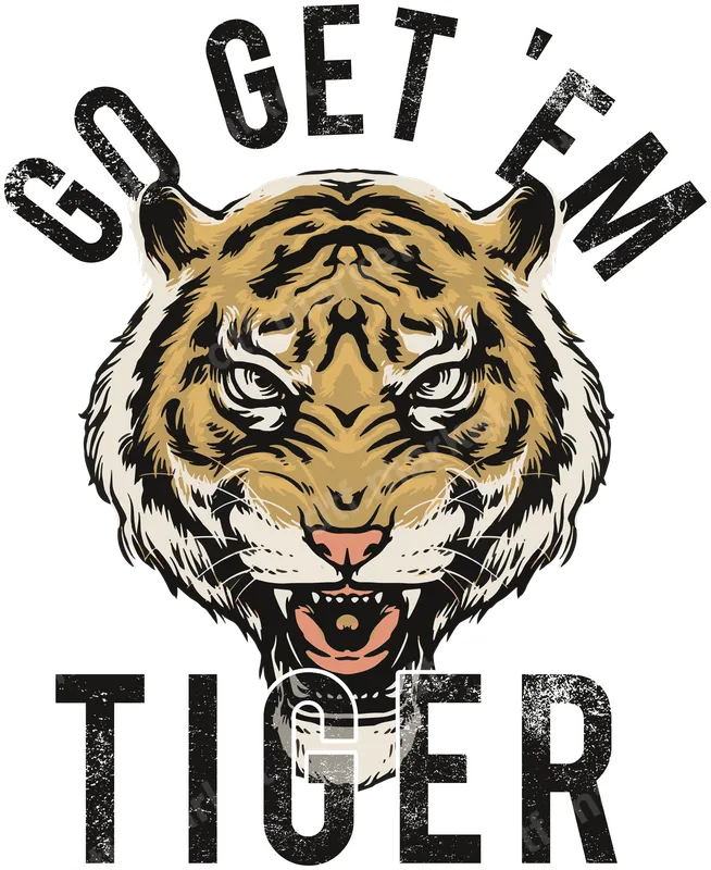 Go Get 'Em Tiger Head Distressed DTF Transfer - Motivational Big Cat