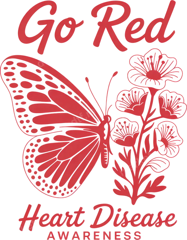 Go Red Heart Disease Awareness Butterfly Floral DTF Transfer