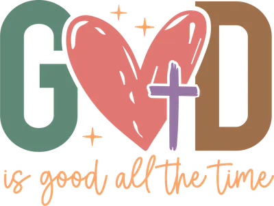 God Is Good All The Time DTF Transfer | Christian Heart Cross Design