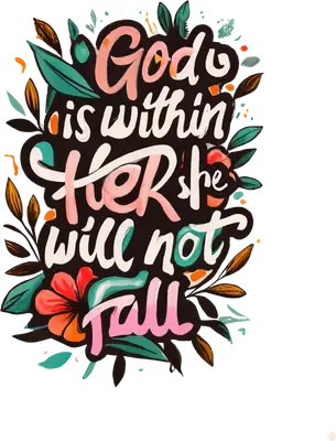 The design features the powerful scripture "God is within HER she will not FALL" from Psalm 46:5, rendered in a beautiful, artistic brush-stroke typography. Vibrant pinks, teal, and soft white lettering are nestled amidst elegant floral and leafy accents, creating an uplifting and feminine aesthetic. This high-quality DTF transfer is a perfect way to express faith and strength, providing a ready to press design that combines spiritual inspiration with modern artistic flair. This inspirational iron on transfer is perfect for Christian women, spiritual leaders, and anyone seeking a daily reminder of divine strength and resilience. It makes an empowering gift for birthdays, Mother's Day, Confirmation, baptism, or simply to encourage a friend or loved one. Small businesses specializing in faith-based apparel, Etsy sellers, and crafters can easily integrate this meaningful heat transfer design into their product lines, offering unique garments that resonate deeply with their customers. Applying this heat press transfer is straightforward, ensuring professional results on a variety of materials including cotton, polyester, cotton-poly blends, and nylon. Achieve optimal adhesion with a heat press at 300-325°F for 15 seconds using medium pressure. Alternatively, a household iron can be used for smaller projects. There's no tedious weeding required – just peel the film and press the design! It's ideal for creating custom t-shirts, hoodies, sweatshirts, tote bags, pillow covers, and even denim jackets. For best longevity, wash garments inside out and tumble dry on low. Experience superior quality with this ready to press transfer, featuring vibrant, full-color printing that captures every fine detail of the intricate floral and typographic design. The finished product is crack-resistant, durable, and boasts a soft, lightweight feel, unlike heavy vinyl. Each direct to film transfer is meticulously printed on premium DTF film with a strong, consistent adhesive backing, guaranteeing a flawless and professional application for every project.