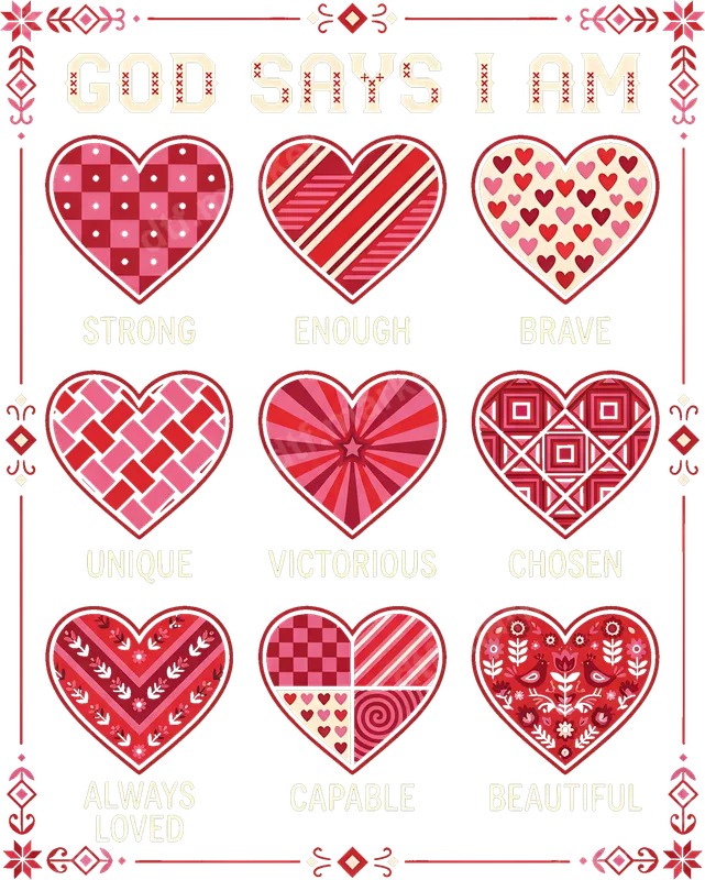 God Says I Am Hearts DTF Transfer | Christian Affirmation Ready to Press Design