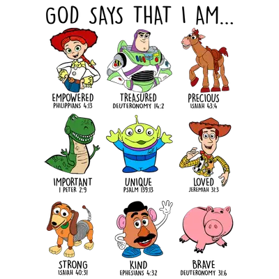 God Says I Am Toy Story Character Affirmations DTF Transfer