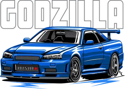 Godzilla R34 Nissan GT-R Blue Sports Car DTF Transfer