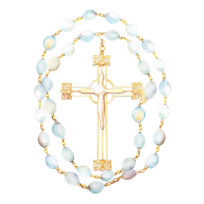 Gold Crucifix Rosary DTF Transfer | Christian Faith Apparel Design