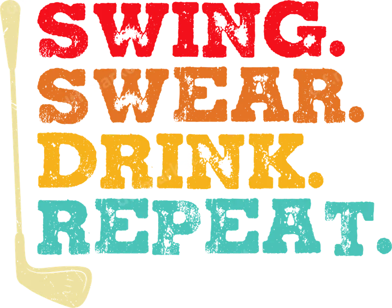 Golf Swing Swear Drink Repeat DTF Transfer Funny Retro