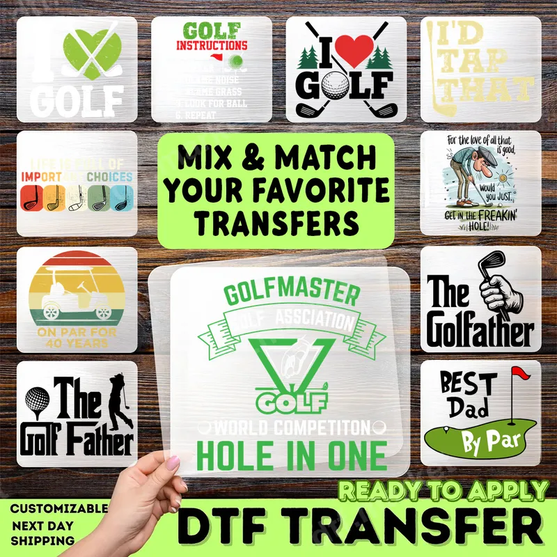 See allElevate your apparel with this exclusive 'Golfmaster Golf Association World Competition Hole In One' DTF transfer. Featuring a classic golf club and ball design within a striking 'V' emblem, this ready to press transfer embodies the spirit of competitive golf and achievement. It’s perfect for showing off your passion for the game, offering a sophisticated look for any golf aficionado. This professional-grade heat transfer is ideal for golf enthusiasts, club members, or anyone who dreams of sinking a hole in one. It makes a fantastic gift for Father's Day, birthdays, or as an award for golf tournaments and charity events. Create custom t-shirts, polos, or hats with this unique iron on transfer, celebrating every swing and victory on the course. Applying your new apparel transfer is simple. Our high-quality DTF transfers work flawlessly on a wide range of fabrics, including cotton, polyester, and blends. Use a heat press at 300-325°F for 15 seconds with medium pressure, or follow specific instructions for a household iron. No tedious weeding or layering required, making customization quick and easy for professional-looking results. Experience brilliant colors and crisp details with our premium heat press design. Each DTF transfer is crafted for exceptional durability, offering a soft-hand feel that resists cracking and peeling, even after multiple washes. Get professional-looking results every time, ensuring your custom garments stand out on the green or off.