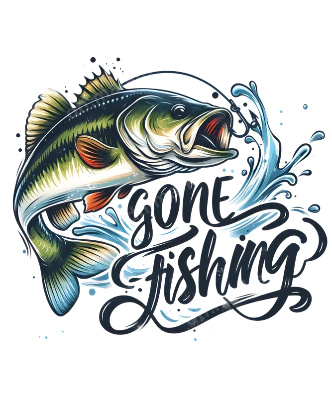 Gone Fishing Bass Fish DTF Transfer | Fisherman Apparel Design