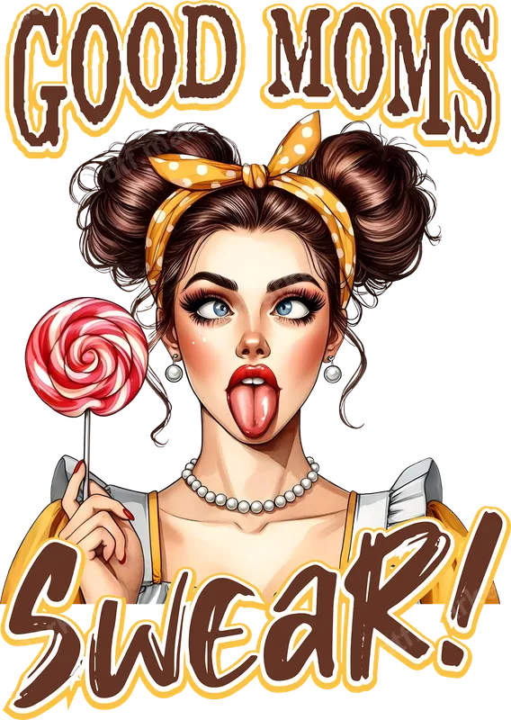 See allShow off your rebellious spirit with our 'Good Moms Swear' DTF transfer. This playful design features a sassy, pin-up inspired woman with a polka-dot bandana, holding a lollipop, with her eyes comically crossed and tongue sticking out, perfectly capturing the fun, no-filter mom vibe. It's a vibrant, high-quality direct to film transfer that arrives ready to press onto your favorite apparel. This humorous heat transfer is ideal for the mom who isn't afraid to be herself and loves a good laugh. Perfect for Mother's Day gifts, birthday presents for your favorite mom friend, or just to add some personality to your everyday wardrobe. It's a fantastic conversation starter and a nod to the realities of mom life, making it a must-have for any sassy mother or supporter of real talk. Applying this apparel transfer is a breeze with a heat press, and can even be done with a household iron. It adheres beautifully to a wide range of fabrics, including cotton, polyester, and their blends. For best results, heat press at 300-325°F for 15 seconds with medium pressure. There's no weeding required, making your customization project quick and enjoyable from start to finish. Our DTF transfers are known for their exceptional quality, delivering designs that are incredibly vibrant, crack-resistant, and have a wonderfully soft feel. Each iron on transfer is printed on professional-grade DTF film with a strong, long-lasting adhesive, ensuring your new custom t-shirt transfer will withstand washes and wear, keeping your sassy statement looking fresh.