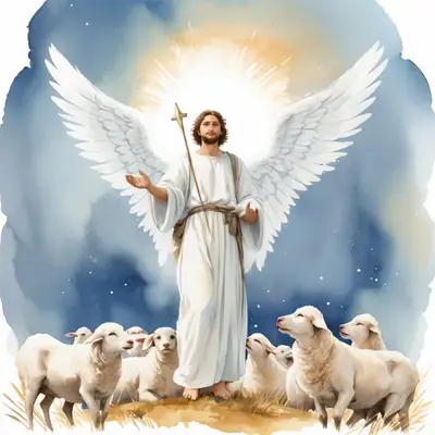 Good Shepherd Jesus Angel DTF Transfer with Sheep Flock