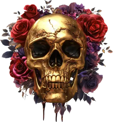 Gothic Golden Skull & Roses DTF Transfer | Ready to Press Heat Transfer