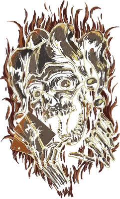Gothic Jester Skull DTF Transfer - Playing Cards & Flames Design