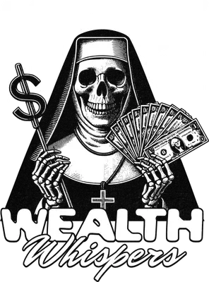 Gothic Nun Skeleton with Money DTF Transfer - Wealth Whispers