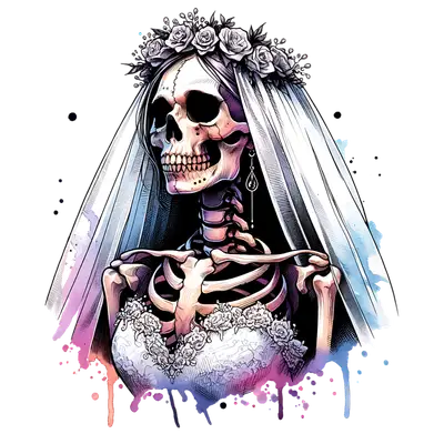 Gothic Skeleton Bride DTF Transfer with Roses & Veil | Watercolor Art